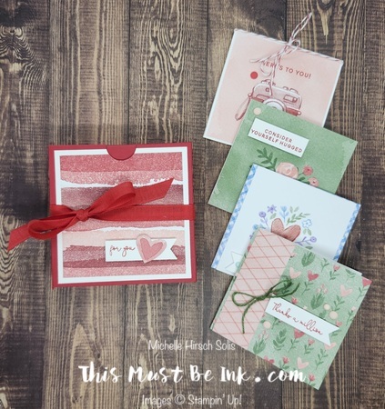 I think this cute little box filled with 3" x 3" gift-enclosure cards is a perfect little gift. Think Valentine's Day, Hostess gift, Birthday surprise, or even Mother's Day!
